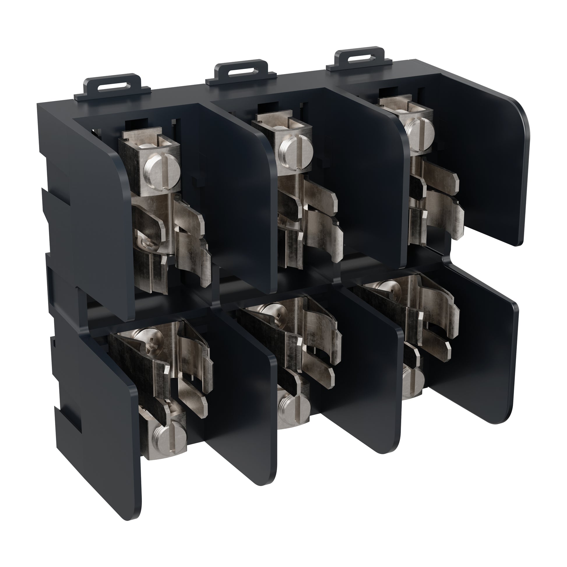 Barrier Type; Glass Filled Polycarbonate Material; 14 to 4 AWG (Copper) Wire Size; UL 512, CSA Approval; 3 Pole(S); Box Lug Terminal Type; Class T Fuse Type; 60 Ampere Fuse Current Rating; 600 VAC Fuse Voltage Rating; Spring Reinforced Clip Type